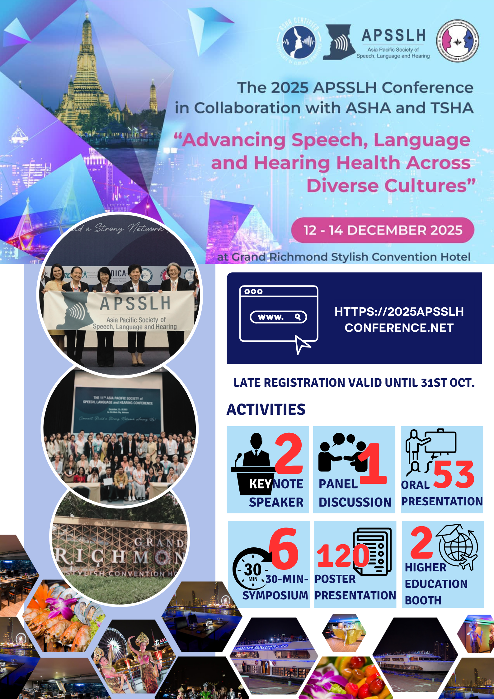 This is your chance to be part of an inspiring scientific and cultural experience featuring keynote sessions, President Talks!, symposia, oral and poster presentations, exhibits, a riverside dinner cruise, and a Thai cultural excursion.